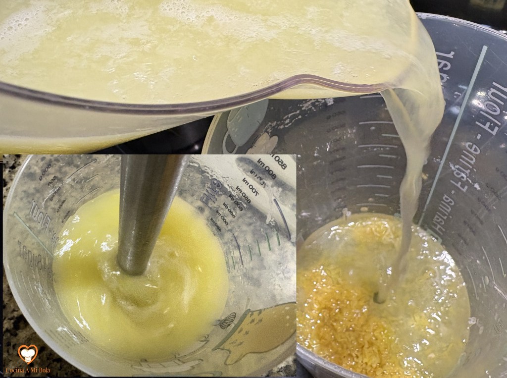 SEGUNDO.- Exprimimos los limones y eliminamos los pipos. Ahora añadimos la ralladura y batimos si pretendemos no percibir sus trocitos. Reservar.