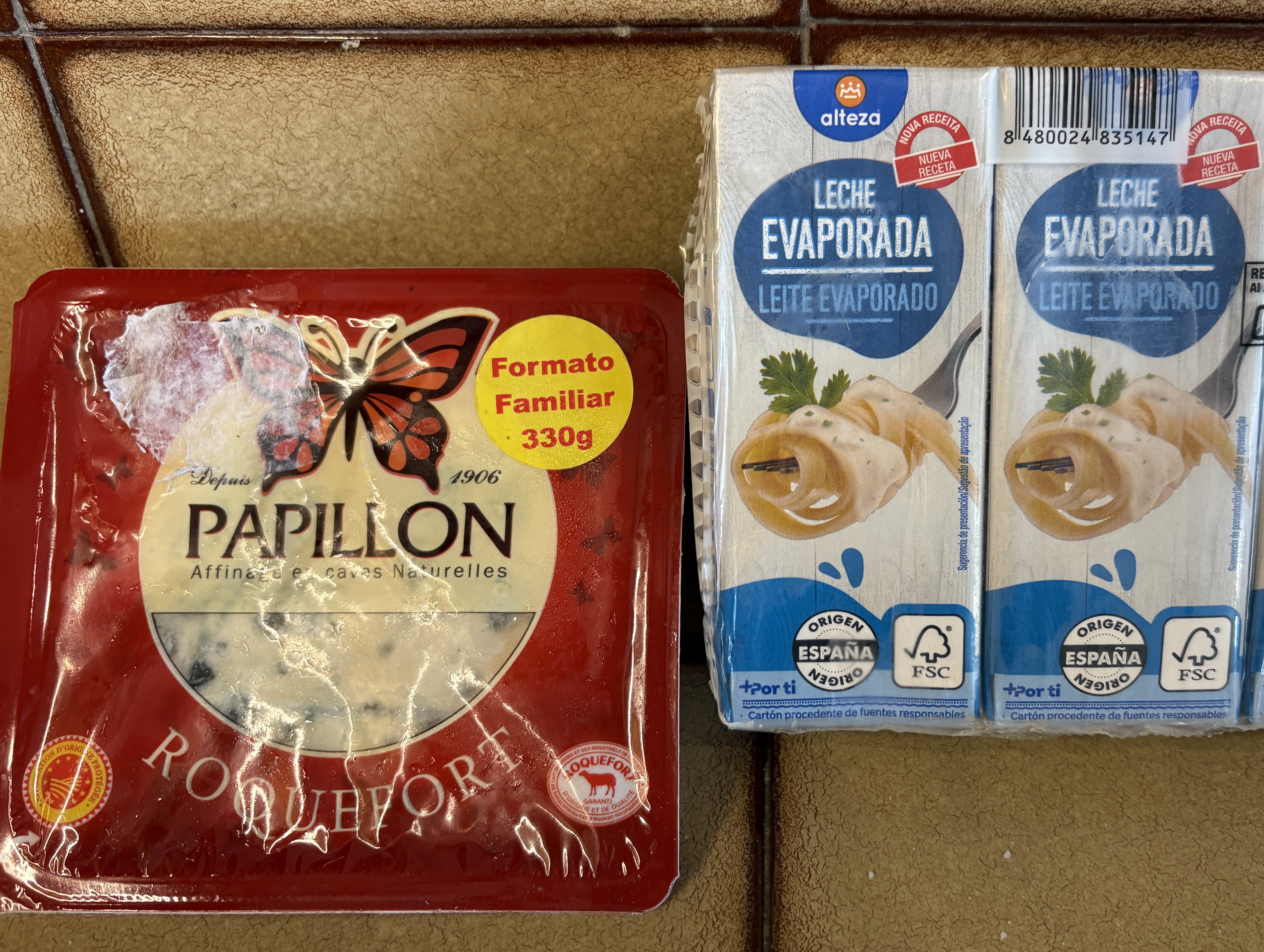 INGREDIENTES: 330 gr queso Roquefort, 400 ml Leche evaporada, pimienta negra molida.