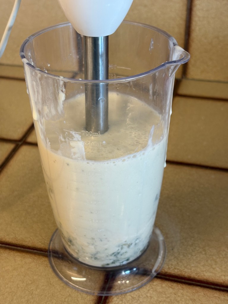 SEGUNDO.- Córtalo en trozos o en tiras y mételo en el vaso batidor. Es tan sencillo que con la batidora de mano es más que suficiente.