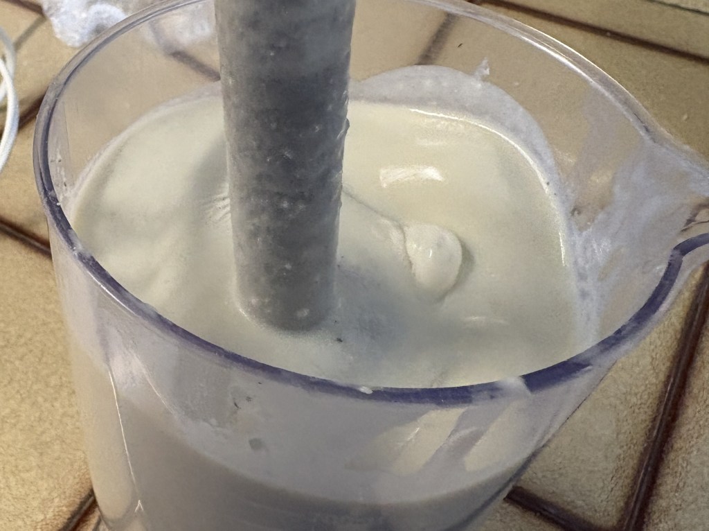 CUARTO.- Adereza ligeramente con pimienta negra molida, agrega la otra mitad de la leche evaporada y bate de nuevo hasta que quede una salsa homogénea.