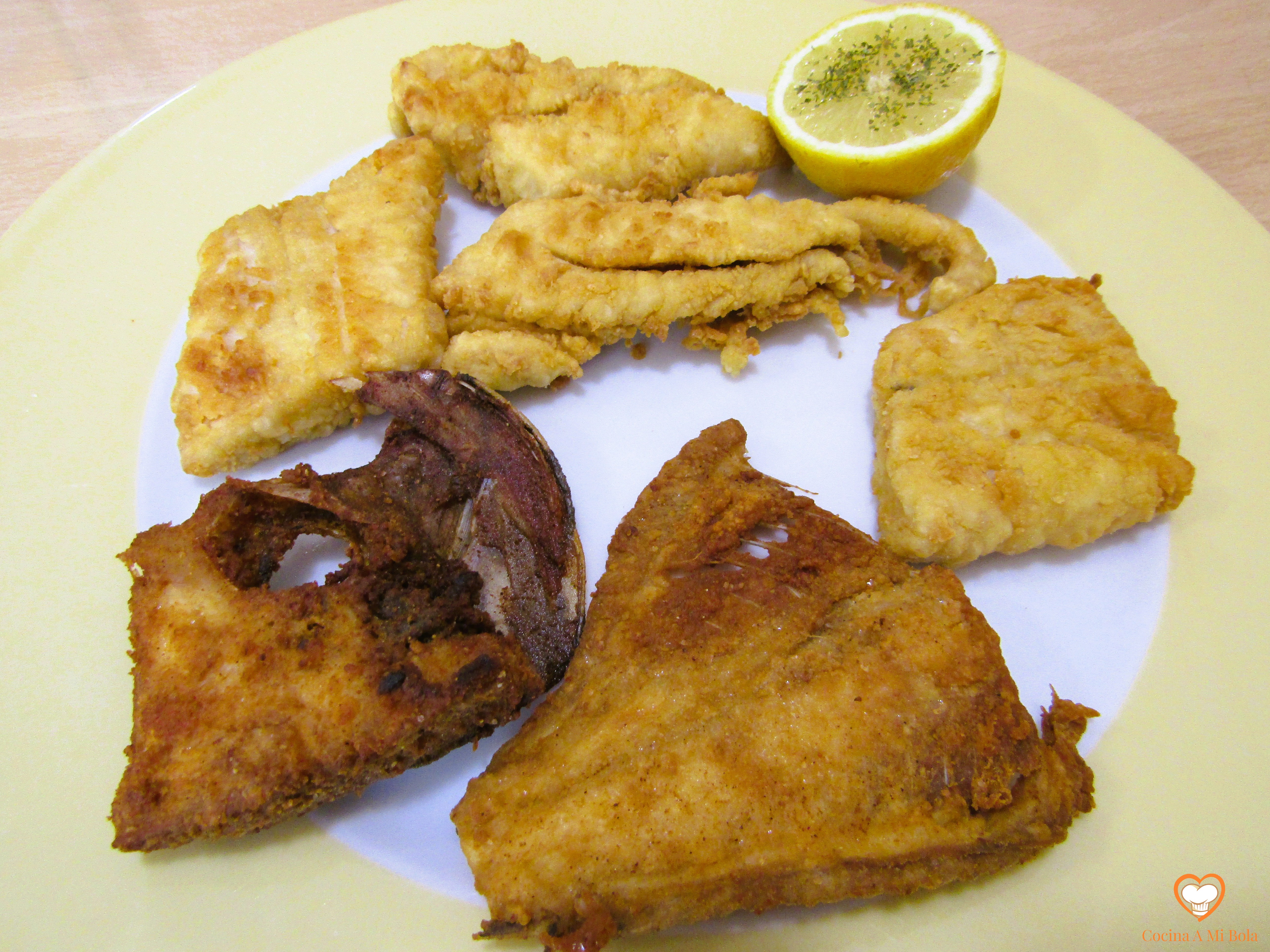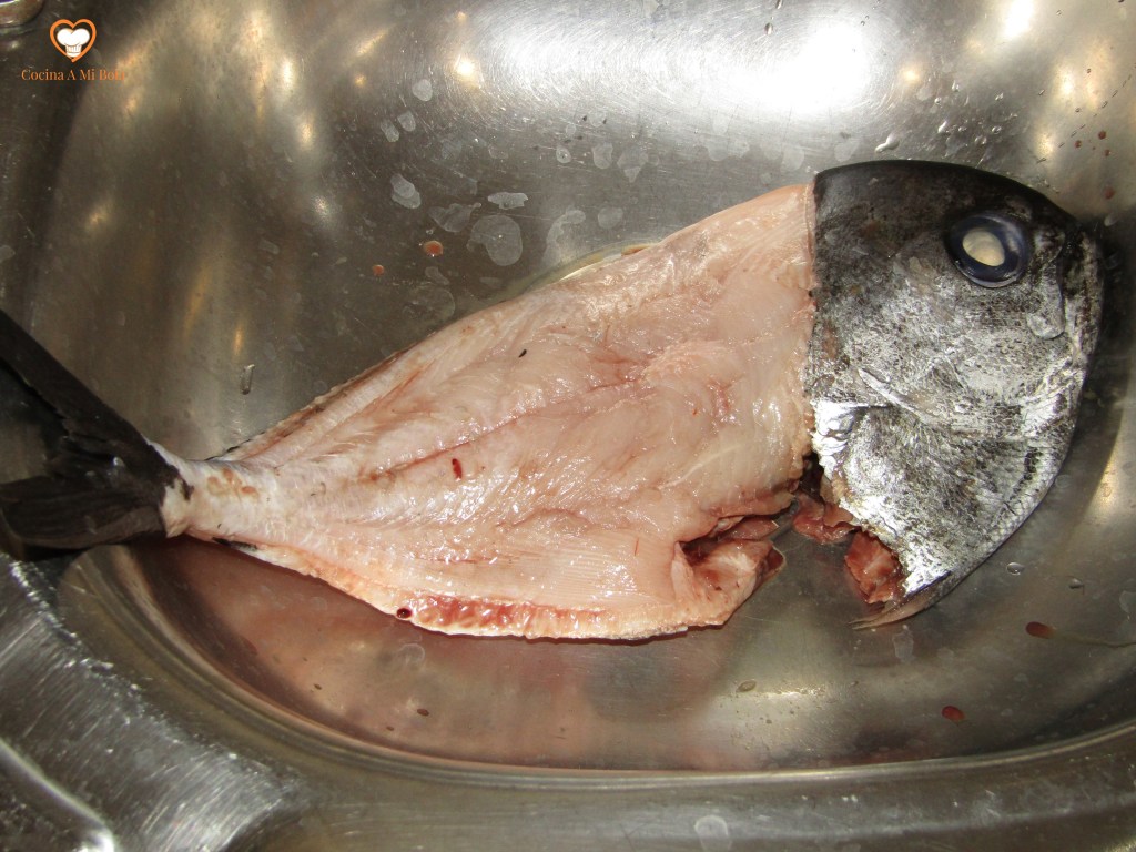 INGREDIENTES: Para 2/3 personas, 1 palometa de 850 gr, aceite de oliva, 2 ó 3 limones, 2 cucharadas de harina de trigo, 2 cucharadas de harina de garbanzo, pimienta negra molida y sal.