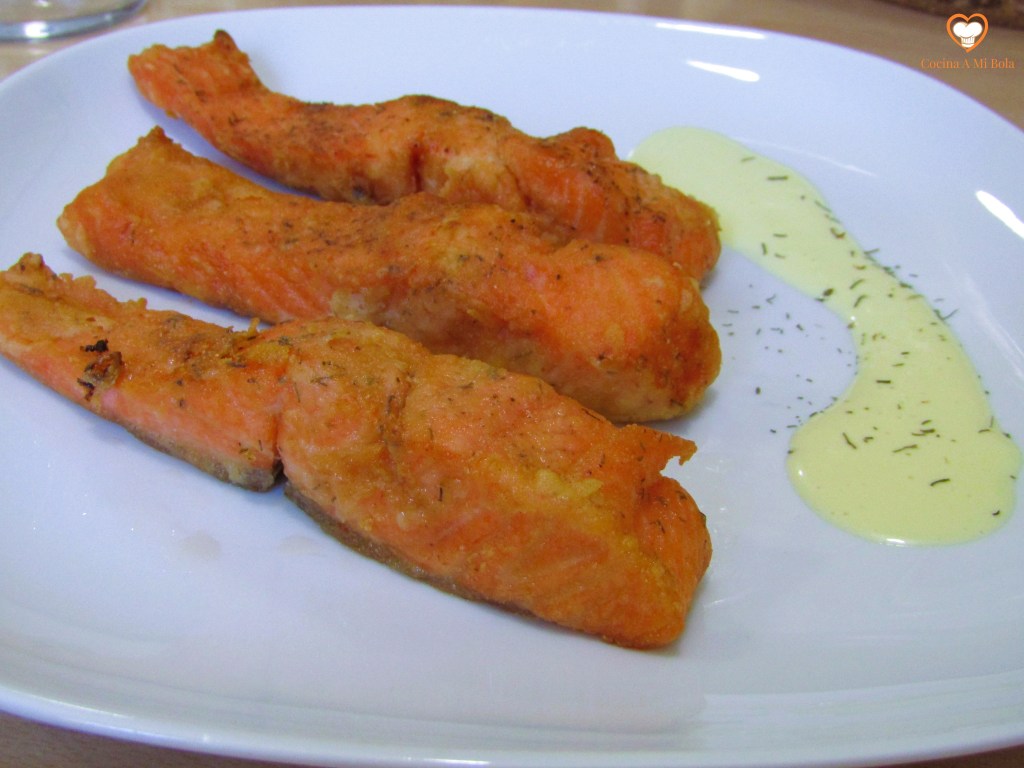 UNDÉCIMO.- Sirve acompañado de la salsa. Como ves, hemos puesto el horno a una temperatura muy moderada y poco tiempo porque el objetivo es que se caliente y se cocine muy ligeramente.