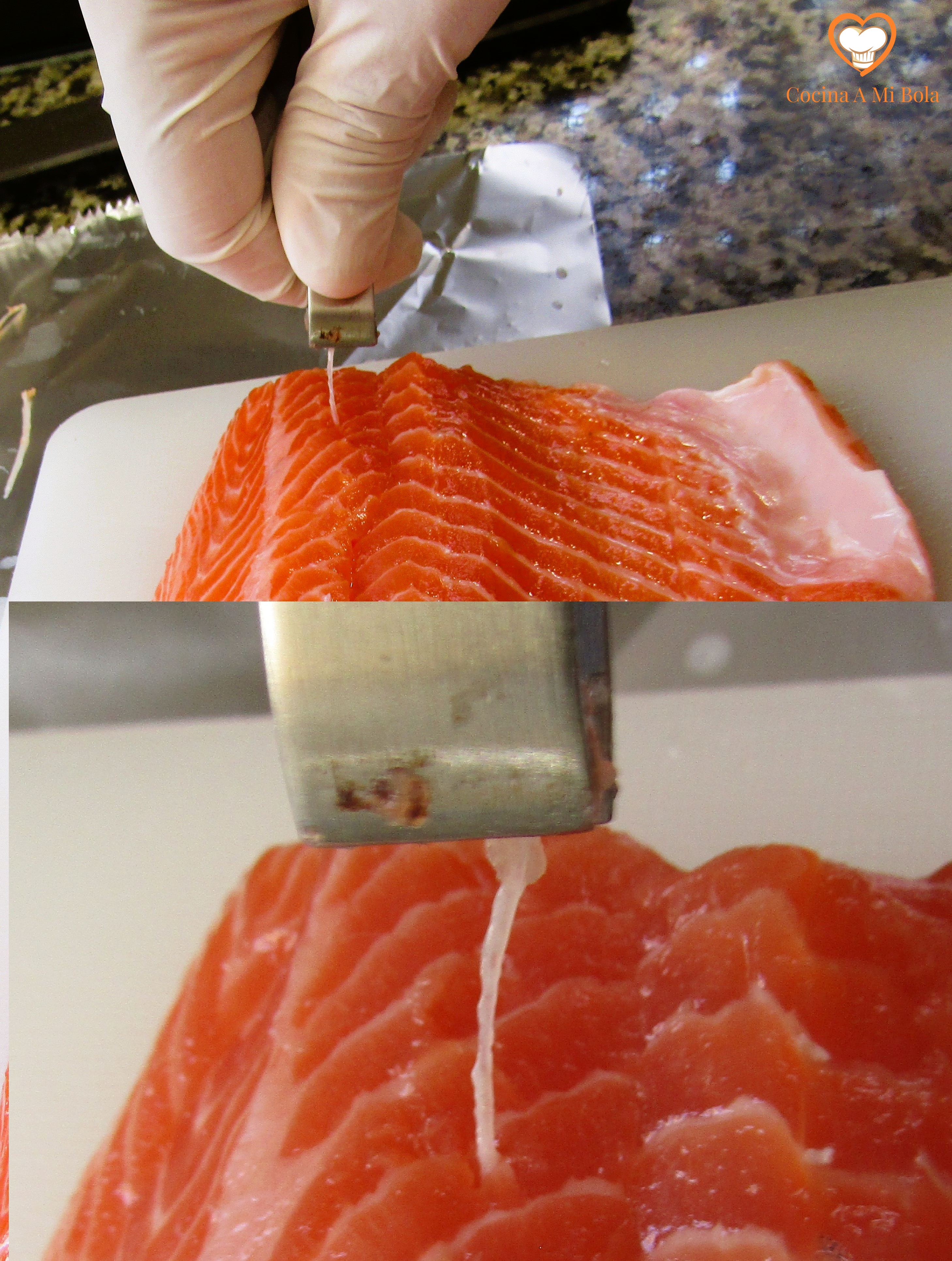 PRIMERO.- Que el pescadero ( o tú mismo/a si te atreves) limpie bien la trucha quitando la escama, la piel y las espinas central y laterales de forma que te quedes con los dos lomos limpios. Aún así, tendrás que extraer con pinzas unas espinas largas que tiene en hilera. Las detectarás fácilmente pasando la mano por el lomo a contrapelo. Puedes dejar esas espinas, pero resultará bastante más molesto de comer.