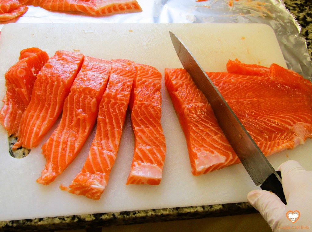 PRIMERO.- Es muy importante que el pescadero corte unas rodajas limpias y lo suficientemente gruesas. Límpialas un poco con un papel de cocina para eliminar restos del corte.