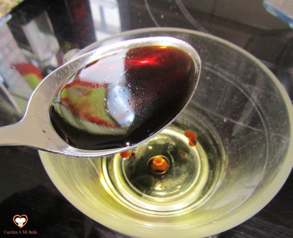 SEGUNDO.- Añade ahora el vinagre, las dos clases de pimentón, la pimienta, el comino, el orégano, las hojas de laurel y el aceite de oliva. Mezcla bien y con paciencia para que se deshagan los grumos que el pimentón habrá formado.