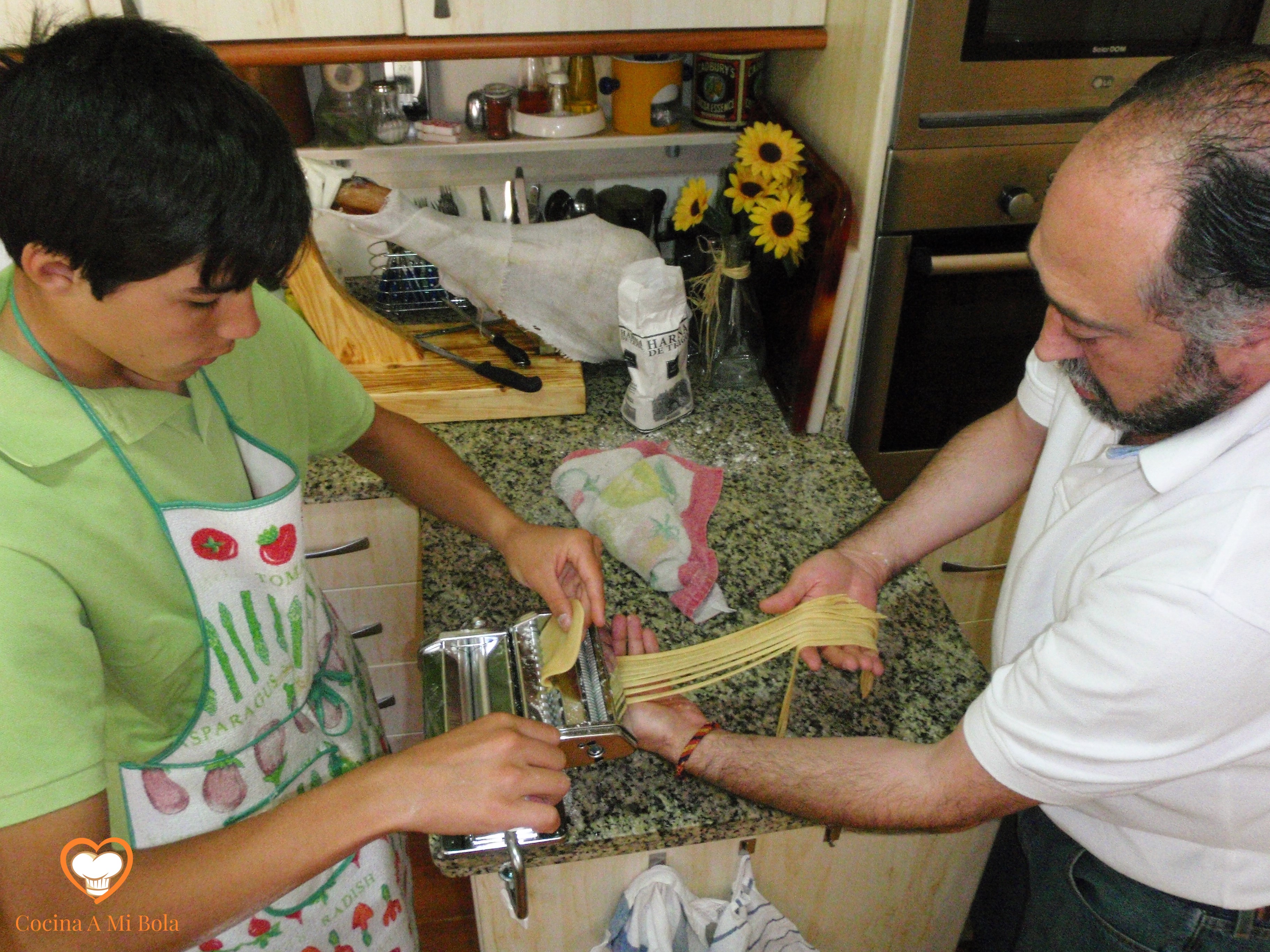 PREVIO.- Hacer pasta fresca en casa es bastante entretenido y podemos fácilmente estar toda la mañana en ello. Si no tienes afición, ni lo intentes. Pero si te gusta la cocina, te resultará casi mágico obtener unos spaghetti partiendo solo de harina y huevo.