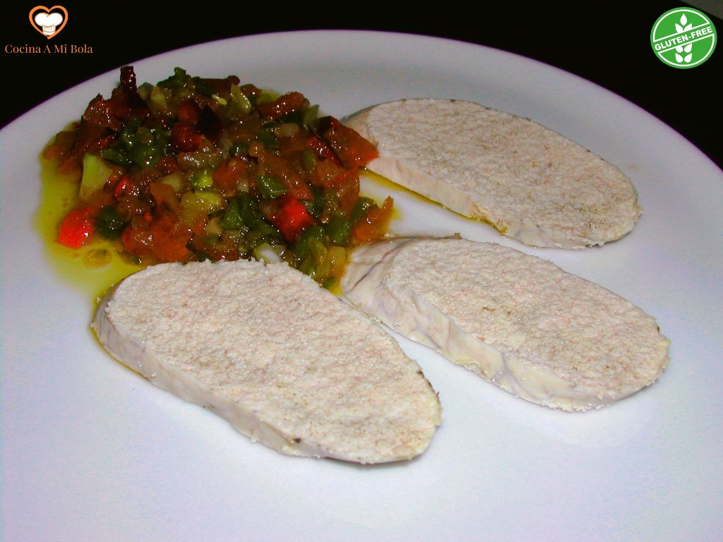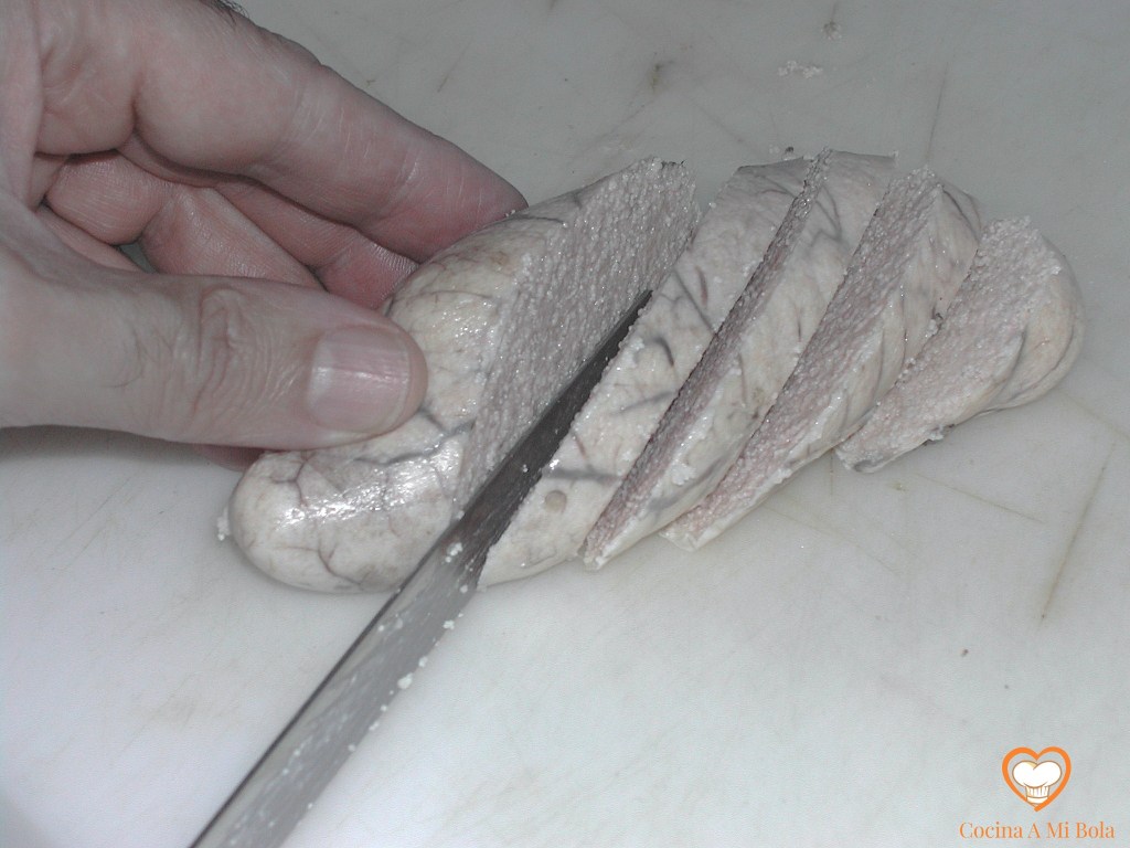 SEXTO.- Servir frías las huevas, cortadas -como hemos dicho- en medallones, acompañadas de la vinagreta. Es un aperitivo delicioso para poner en el centro. En Málaga, también es muy común tomar las huevas con ali-oli o mahonesa. Es un plato sin