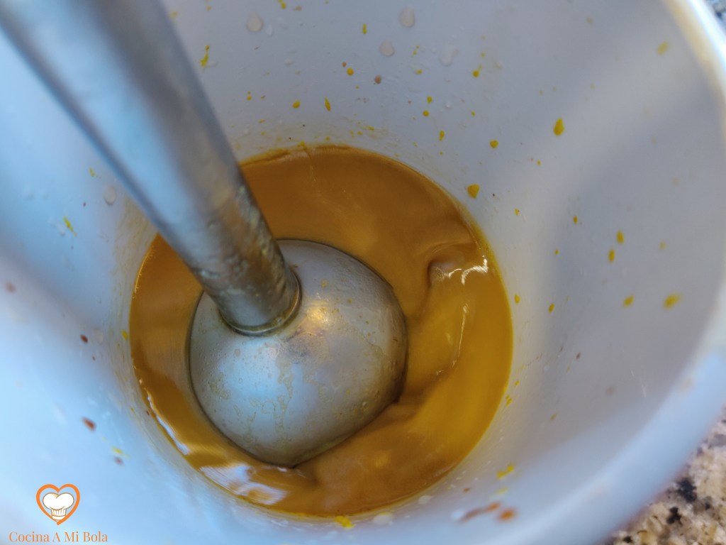 Echa todos los ingredientes en el vaso batidor y mezcla bien, asegurándote que el diente de ajo queda bien triturado.
