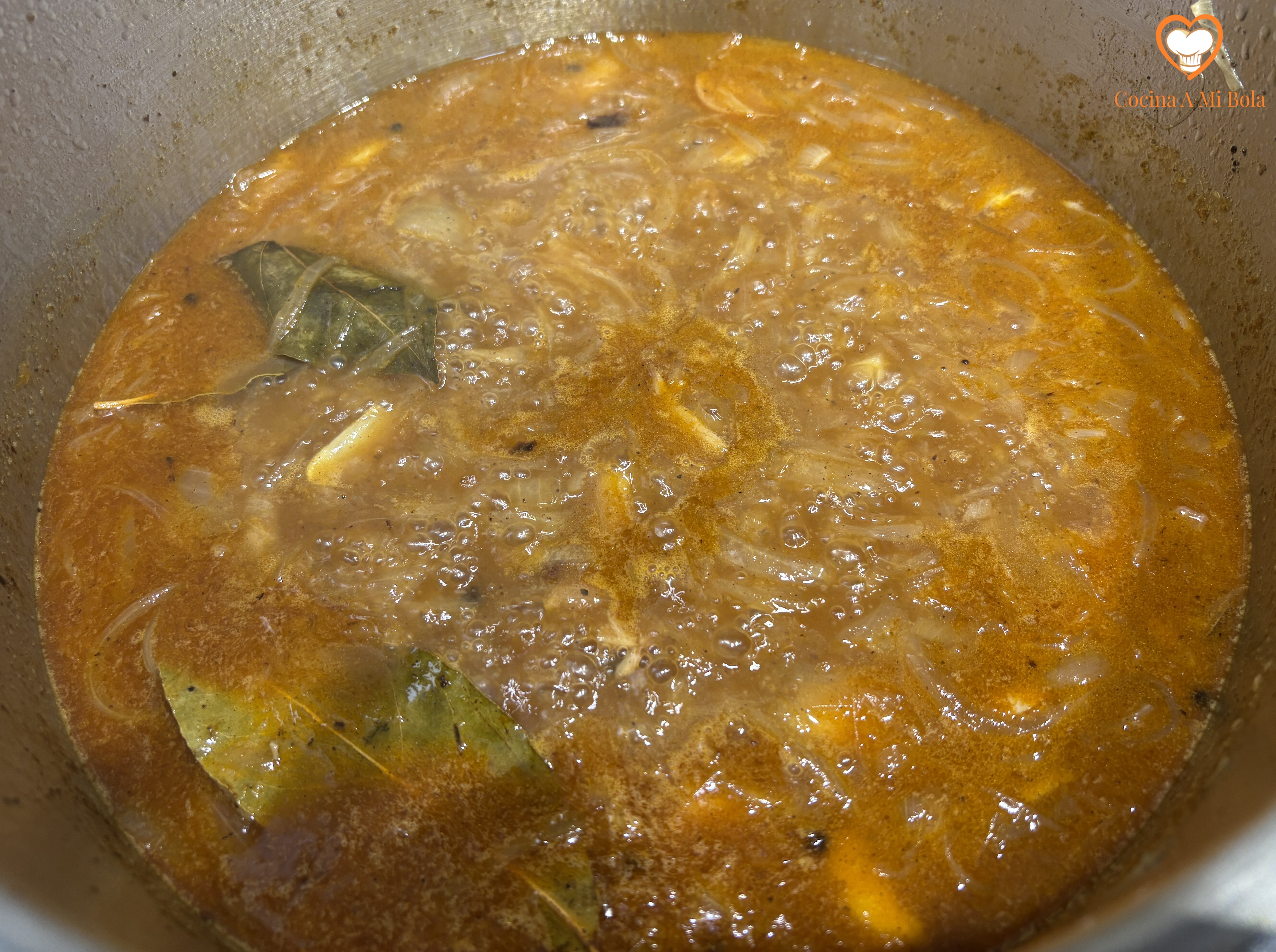 QUINTO.- Una vez recupere el hervor, baja el fuego y remueve de vez en cuando. Tendrá que estar unos veinte minutos aproximadamente hasta que todo quede bien pochado, de forma que cada ingrediente haya aportado su aroma y su sabor, mezclándose todos ellos.