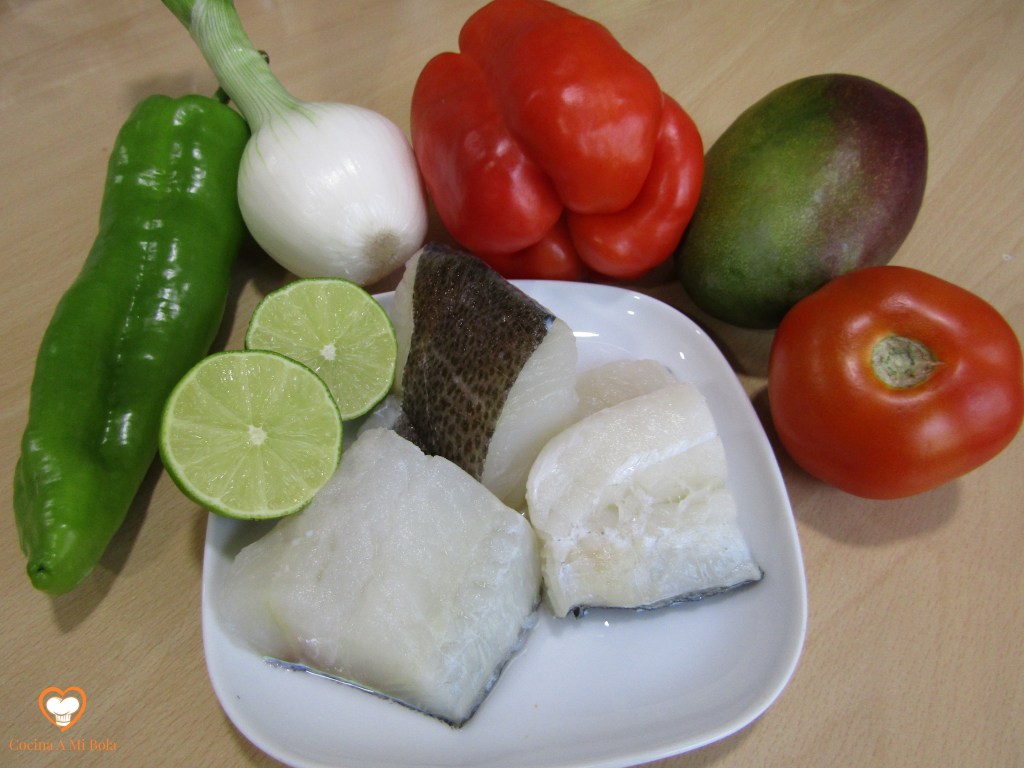 INGREDIENTES: Para 4 personas: 4 porciones de lomos de bacalao en salazón muy gruesos, 1 pimiento morrón, 1 cebolla grande, 12 dientes de ajo, harina