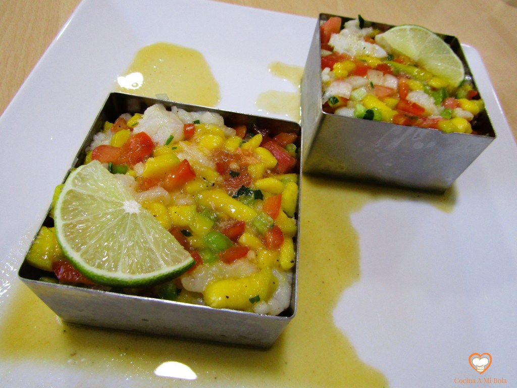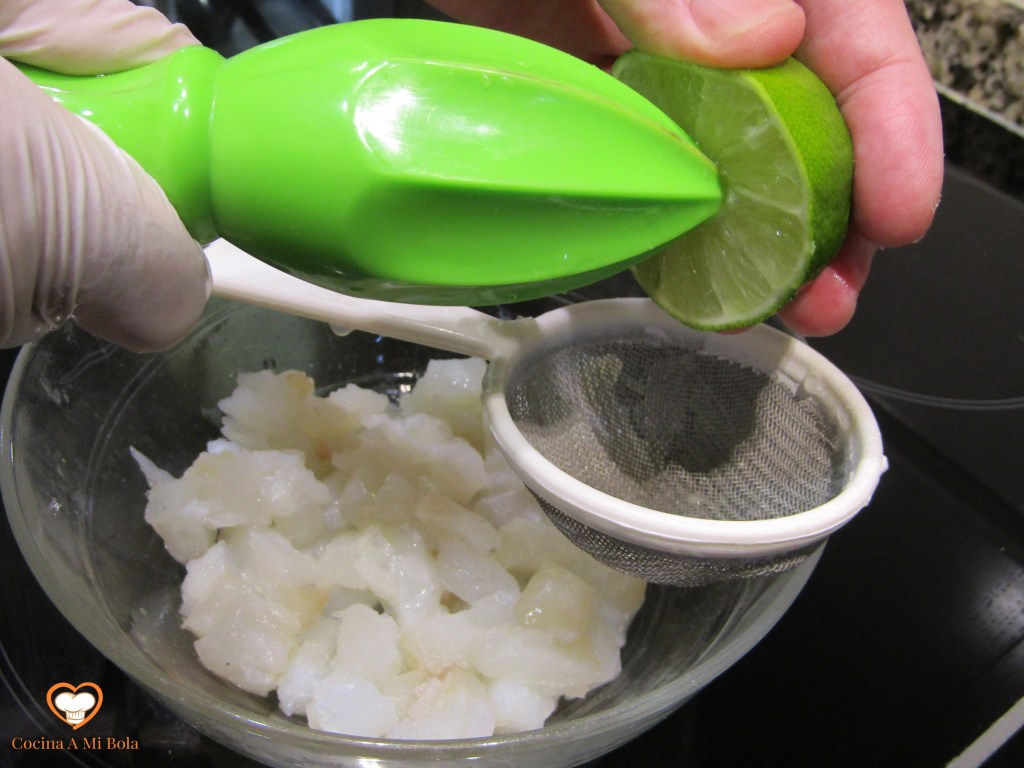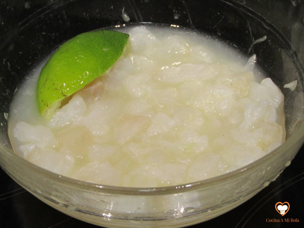 arroz las tajadas por todos sus lados sacudiéndolas un poco para eliminar el exceso. Hazlo de dos en dos, sube la intensidad del fuego y cuando esté muy caliente, échalas a la sartén dorándolas rápidamente por todos sus lados y sácalas a una fuente con papel absorbente. Mucha delicadeza al dar la vuelta y al sacar el pescado porque estará ya muy tierno. Insisto en que el aceite debe estar muy caliente para darle un dorado suave. Si lo mantenemos demasiado, se cocinará el pescado y lo queremos a medio hacer. Repite lo mismo con las otras dos y reserva.