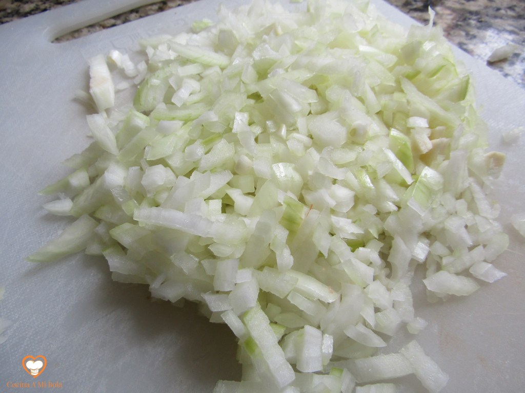 SEGUNDO.- Pica fino la cebolla y ponla a pochar en aceite de oliva virgen extra sobre una sartén o cazuela donde nos quepan los berberechos y que tenga tapa. Salpimenta y añade el laurel. Mantén un fuego moderado para que se haga despacio, pero si se tuesta ligeramente, no pasa nada. De hecho yo lo provoco, porque me gusta el resabor que deja a la salsa. Pero insisto; muy ligeramente.