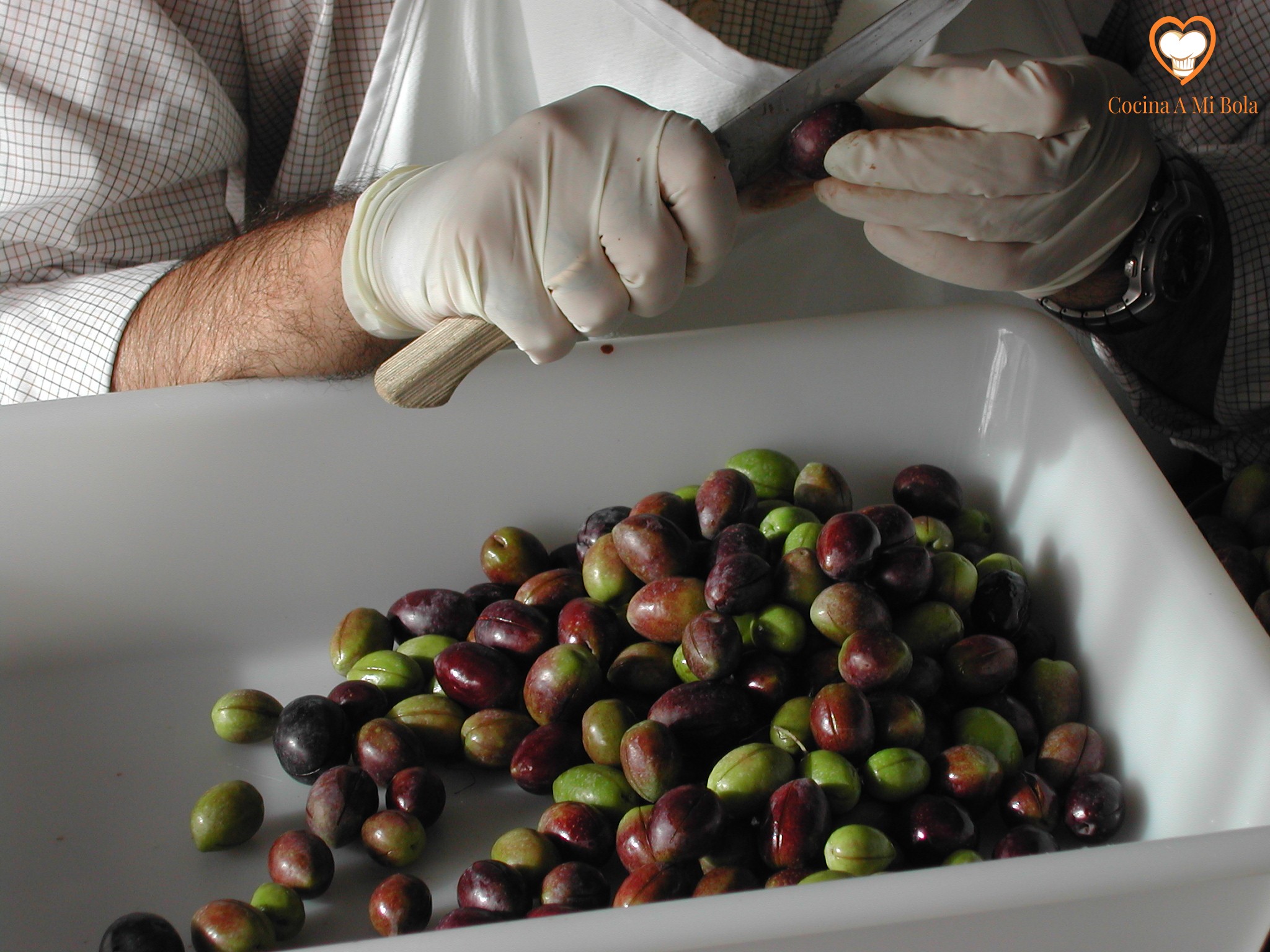 PRIMERO.-Hemos de comprar medio kilo de aceitunas negras cacereñas. Las mejores son las de las tiendas de variantes porque las compramos a granel y podemos ver su aspecto e incluso probarlas. Algunas compradas en lata son de una calidad que deja mucho que desear por ser excesivamente saladas o por ser demasiado pequeñas y tener un hueso grande.